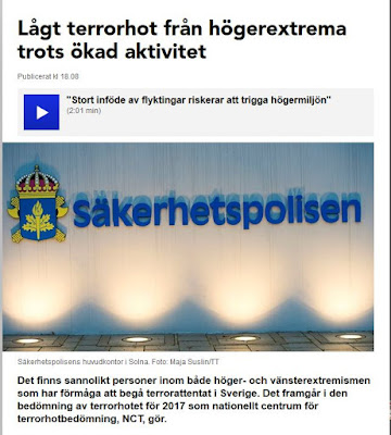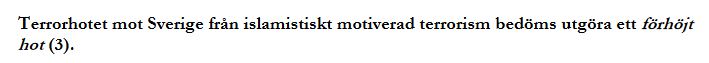 Så tittar vi på vad Nationellt centrum för terrorhotbedömning faktiskt har kommit fram till i sin bedömning för året 2017.